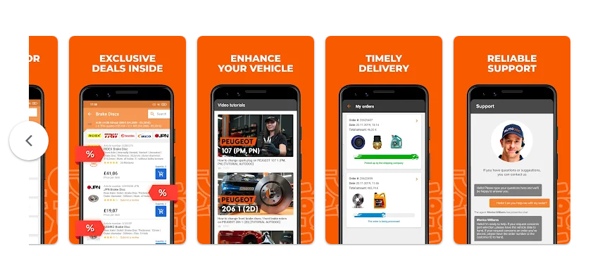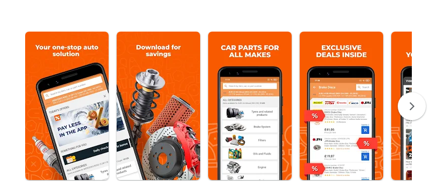 يعتبر تطبيق AUTODOC الأفضل لشراء قطع غيار السيارات كونه يوفر  تشكيلة ضخمة من قطع الغيار لأكثر من 54 علامة تجارية شهيرة للسيارات، مثل Audi، BMW، Mercedes، Toyota، Ford وغيرها.