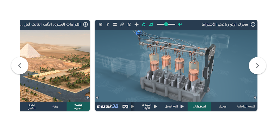 يُعد تطبيق موزايك 3D منصة تعليمية تفاعلية تعتمد على مشاهد ثلاثية الأبعاد لتسهيل فهم الدروس بأسلوب بصري مشوّق.
