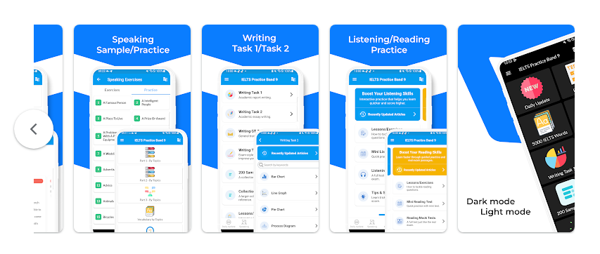 ميزات تطبيق IELTS Practice Band 9