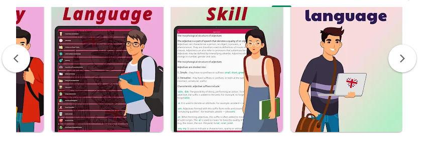 يتيح التطبيق تعلم الصفات الإنجليزية بعمق، فهو يقدّم شرحاً واضحاً للقواعد مع أمثلة عملية تساعد على فهم كل نقطة بسهولة، وهويُعد أداة مثالية للتحضير لاختبارات مثل IELTS وTOEFL.