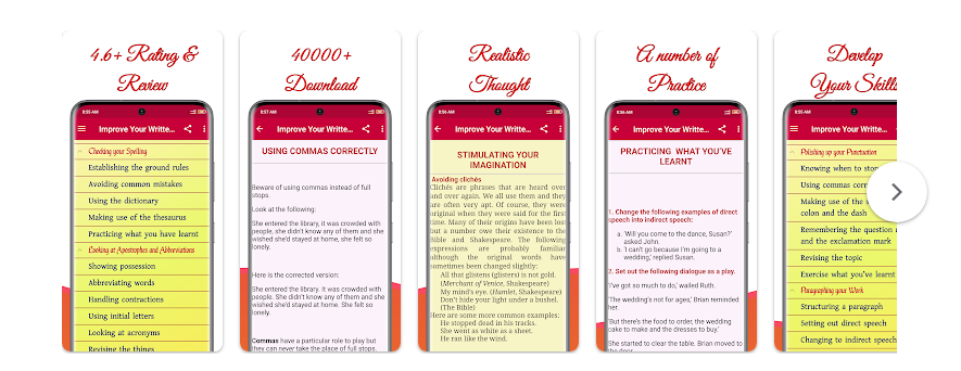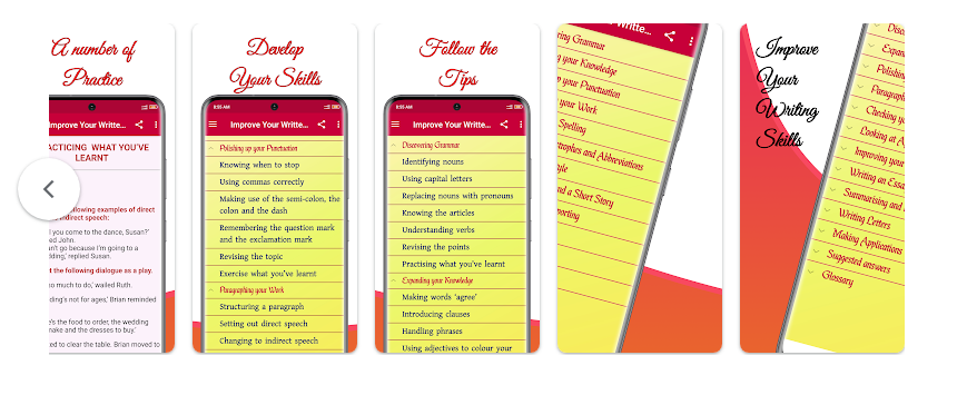 ميزات  تطبيق Improve English Writing Skills