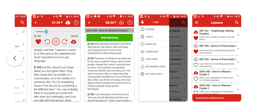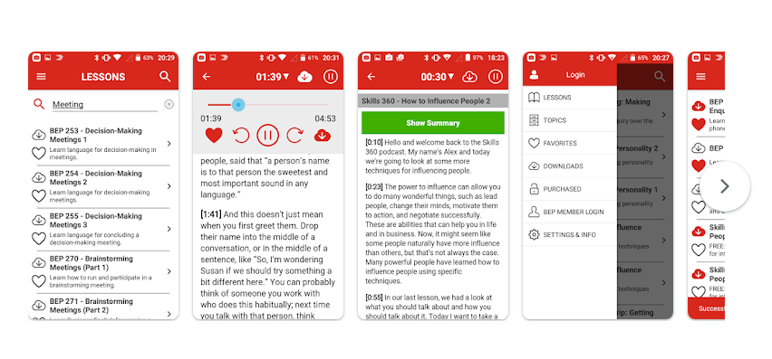 ويمنح التطبيق المستخدم تجربة تعليمية ثرية من خلال محتوى متكامل يضم مئات الدروس التي تغطي طيفاً واسعاً من المواقف المهنية، بدءاً من الاجتماعات والعروض التقديمية، وصولاً إلى المفاوضات، والمبيعات، ومقابلات العمل.