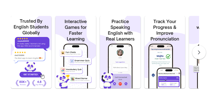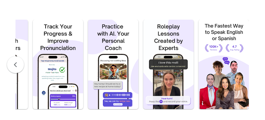 يساعدك في تحسين النطق، فهو يقيّم لفظك للكلمات ويعطيك نسبة دقة فورية، وهي ميزة فعّالة ومفيدة للغاية.