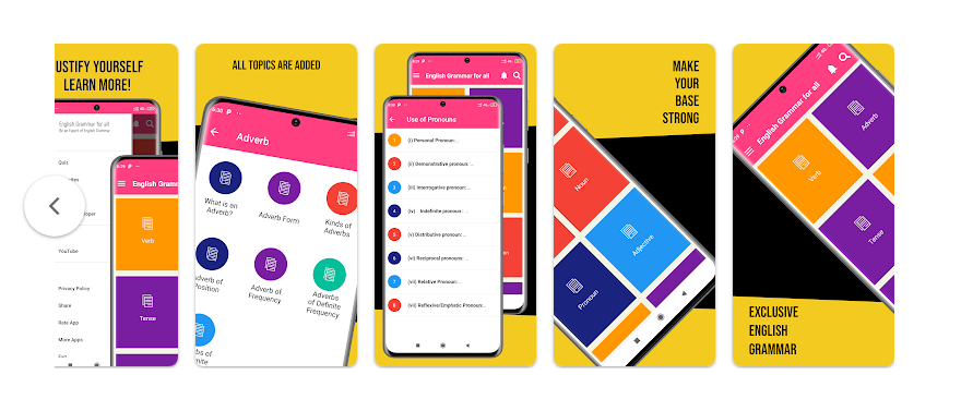 يقدّم التطبيق شرحاً وافياً لجميع قواعد اللغة الإنجليزية، من الأسماء والأزمنة إلى المبني للمجهول والضمائر وحالات الأفعال وغيرها من الموضوعات الأساسية والمتقدمة، مع أمثلة توضيحية تساعد على فهم القاعدة وتطبيقها بثقة.