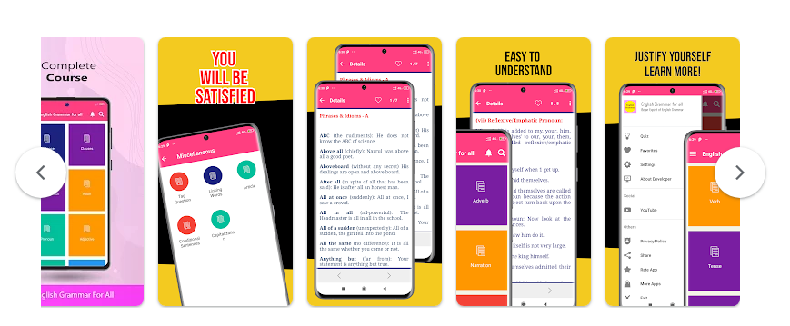 ومن بين هذه التطبيقات، يبرز تطبيق English Grammar Full كخيار مميز، لما يقدّمه من محتوى شامل ومبسط يساعد المستخدمين على فهم القواعد بسهولة وبناء أساس لغوي متين.