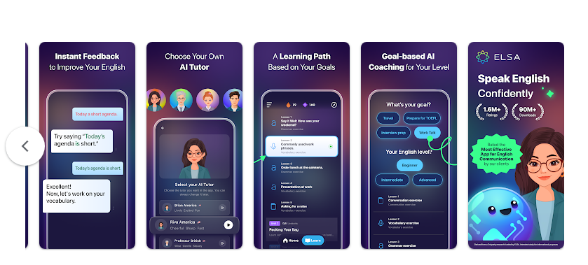 ويعد تطبيق ELSA Speak من أحدث الأدوات في عالم تعلّم اللغات، إذ يعتمد على الذكاء الاصطناعي لتحليل طريقة نطقك وتصحيح أخطائك فوراً، ليصبح بمثابة مدرّب لغة شخصي داخل هاتفك.