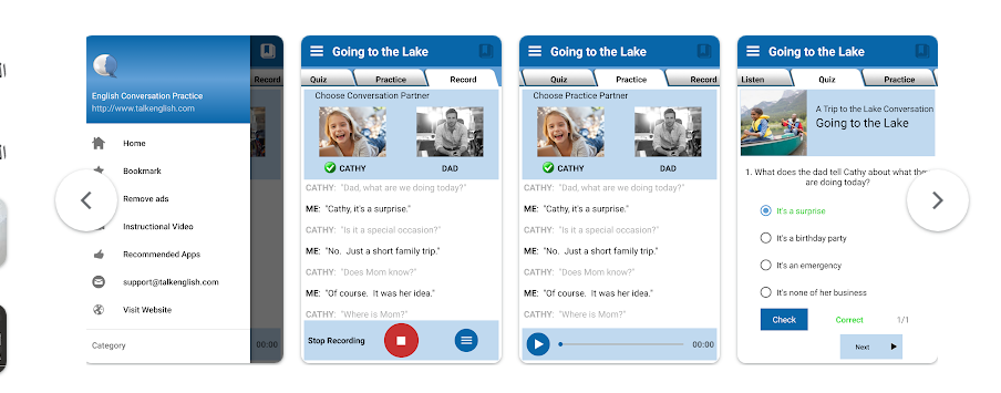 ويوفر التطبيق تمارين استماع متقدمة تساعدك على فهم المحادثات بسرعة أكبر وتحسين التركيز على النطق والإيقاع الطبيعي للكلمات.