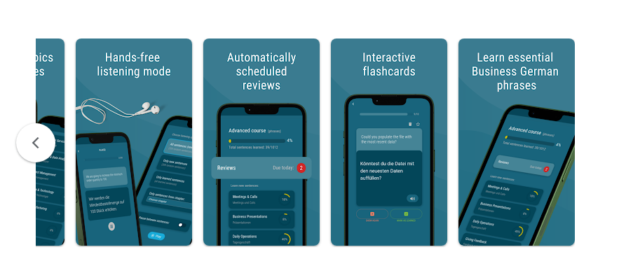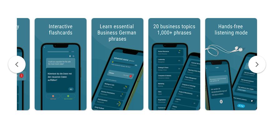 وقد أصبح تعلم اللغة الألمانية للأعمال أكثر سهولة مع تطبيق Business German، الذي يجمع آلاف العبارات الأساسية المستخدمة في مواقف العمل المختلفة، ليتيح للمستخدمين التواصل بثقة في أي ظرف تجاري.