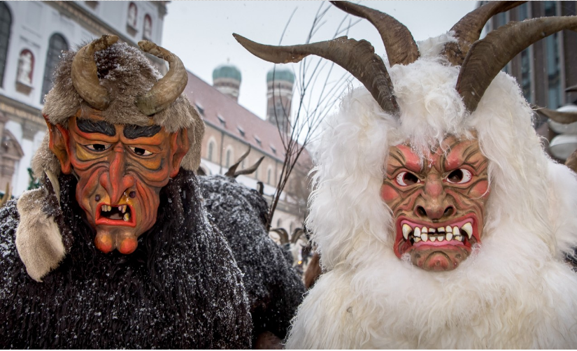 كرامبوس، الشخصية الشيطانية التي ترافق موسم القديس نيكولاس في جنوب ألمانيا، يظهر في مسيرات مرعبة خلال ليلة الخامس من ديسمبر، خاصة في بافاريا والنمسا، ضمن فعاليات تُعرف باسم “سباق كرامبوس”.