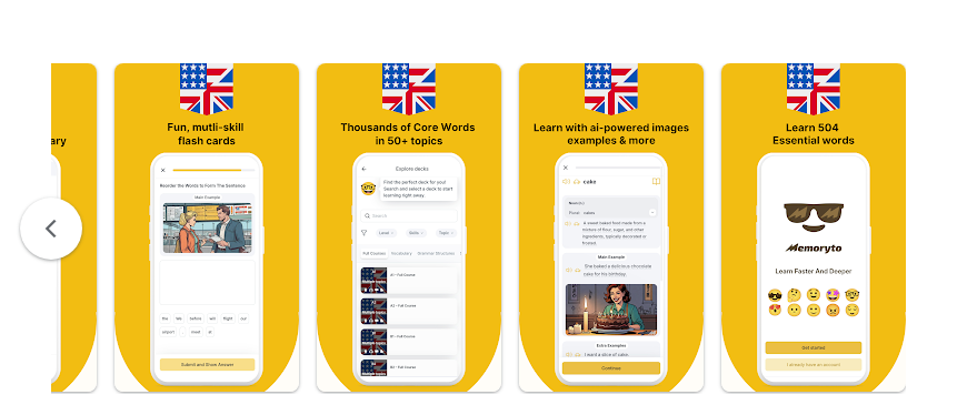 يضم التطبيق مجموعة من الخصائص التعليمية المتقدمة التي تسهم في رفع كفاءة اكتساب المفردات وترسيخها على المدى الطويل، حيث يعتمد على قائمة لغوية موثوقة تتضمن 504 كلمة أساسية مستخدمة على نطاق واسع في المناهج التعليمية ودورات التحضير لاختبارات اللغة.