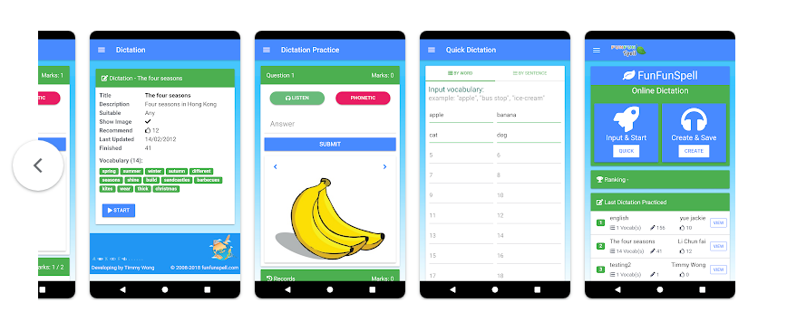 ببساطة، تطبيق funfunspell.com يُركز على التهجئة وممارسة الاستماع، وهو تفاعلي وممتع نوعاً ما، مما يخلصك من الملل الذي قد يرافق عملية التعلم.