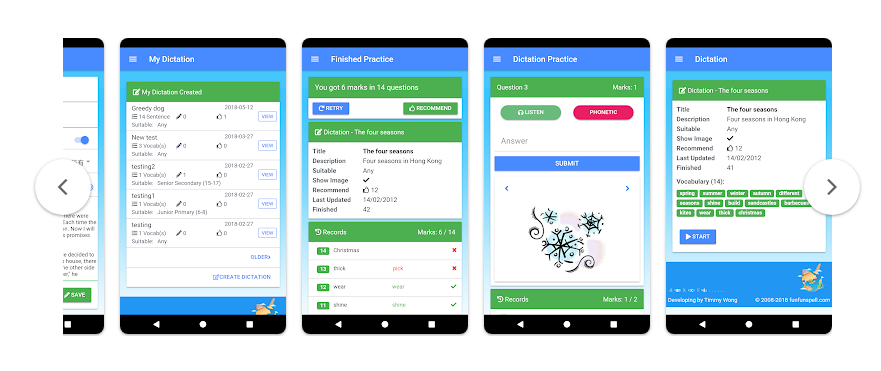 الرائع هو أنك ستتمكن إنشاء اختبارات إملائية خاصة بك وحفظها، فقد يجد المعلمون ذلك مفيداً، ولكنه في الحقيقة مفيد لأي شخص يرغب في التدرب على كلمات محددة يواجه صعوبة في نطقها.